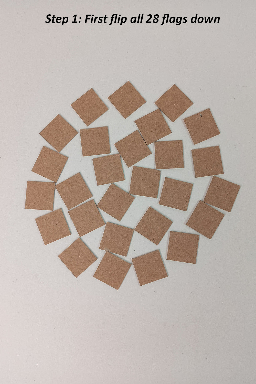 Step 1: First Flip all 28 flags downwards